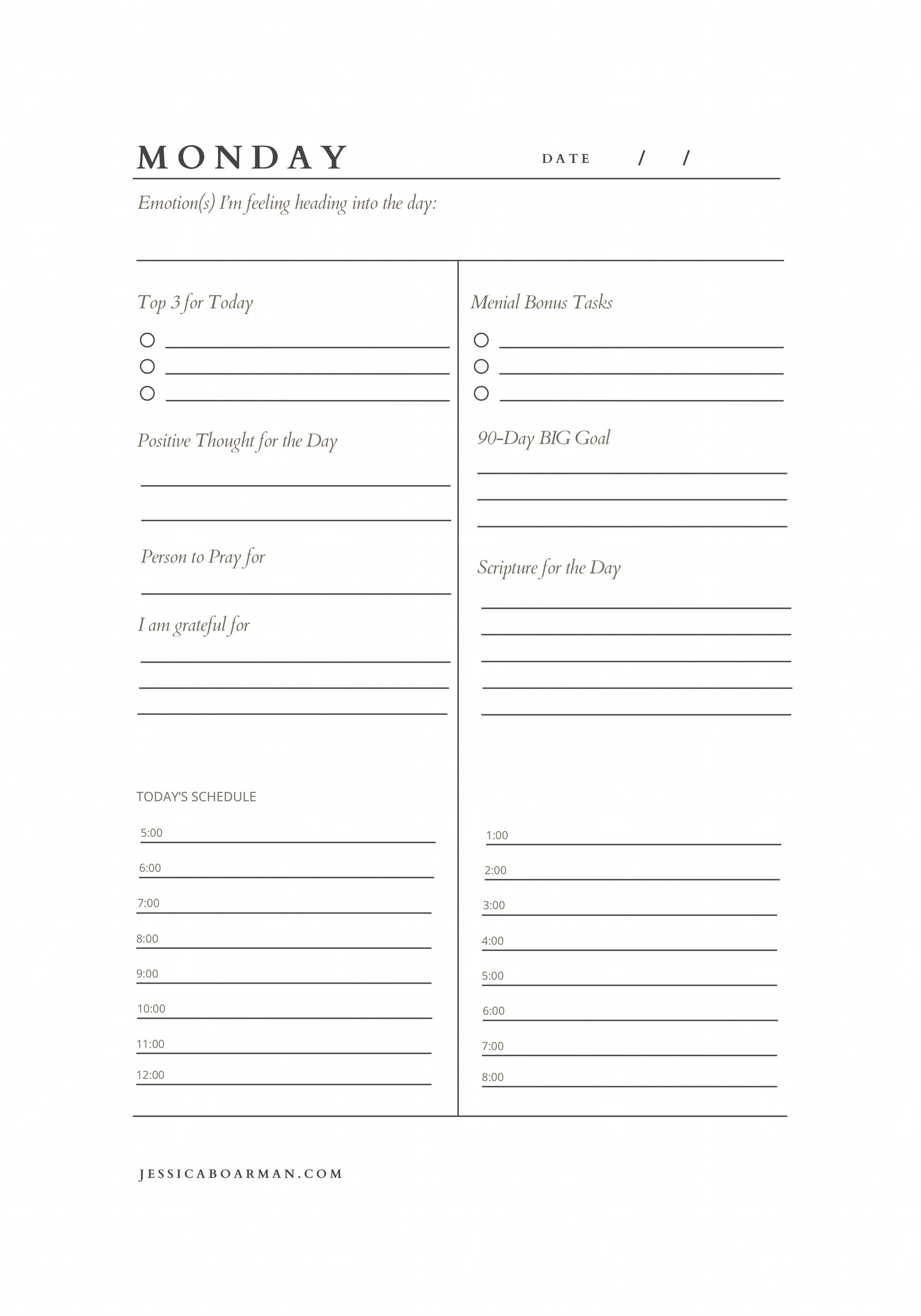 A 90-day life organizer that includes: